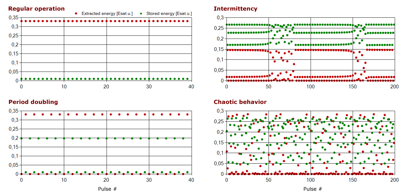Conventional lasers are built to generate a stable train of pulses with constant energy. Under certain conditions, lasers can generate sequences of pulses with random energy originating from intrinsic nonlinear dynamics of class B lasers. Although chaotic behavior is usually undesirable for standard applications, it can also enable specialized niche applications. A numerical model was developed to investigate the feasibility of generating chaotic sequences of ultrashort pulses of sub-mJ level and ways to control those sequences.